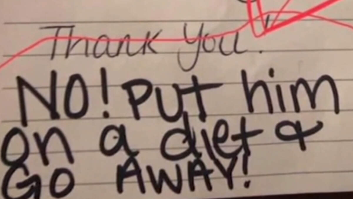 “No! Put him on a diet and go away,” the teacher wrote.