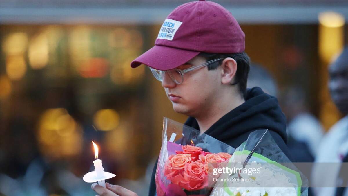Here's a close quarters encounter between a student who survived the Parkland school shooting and the deputy who stayed outside. (photo courtesy of Getty Images)